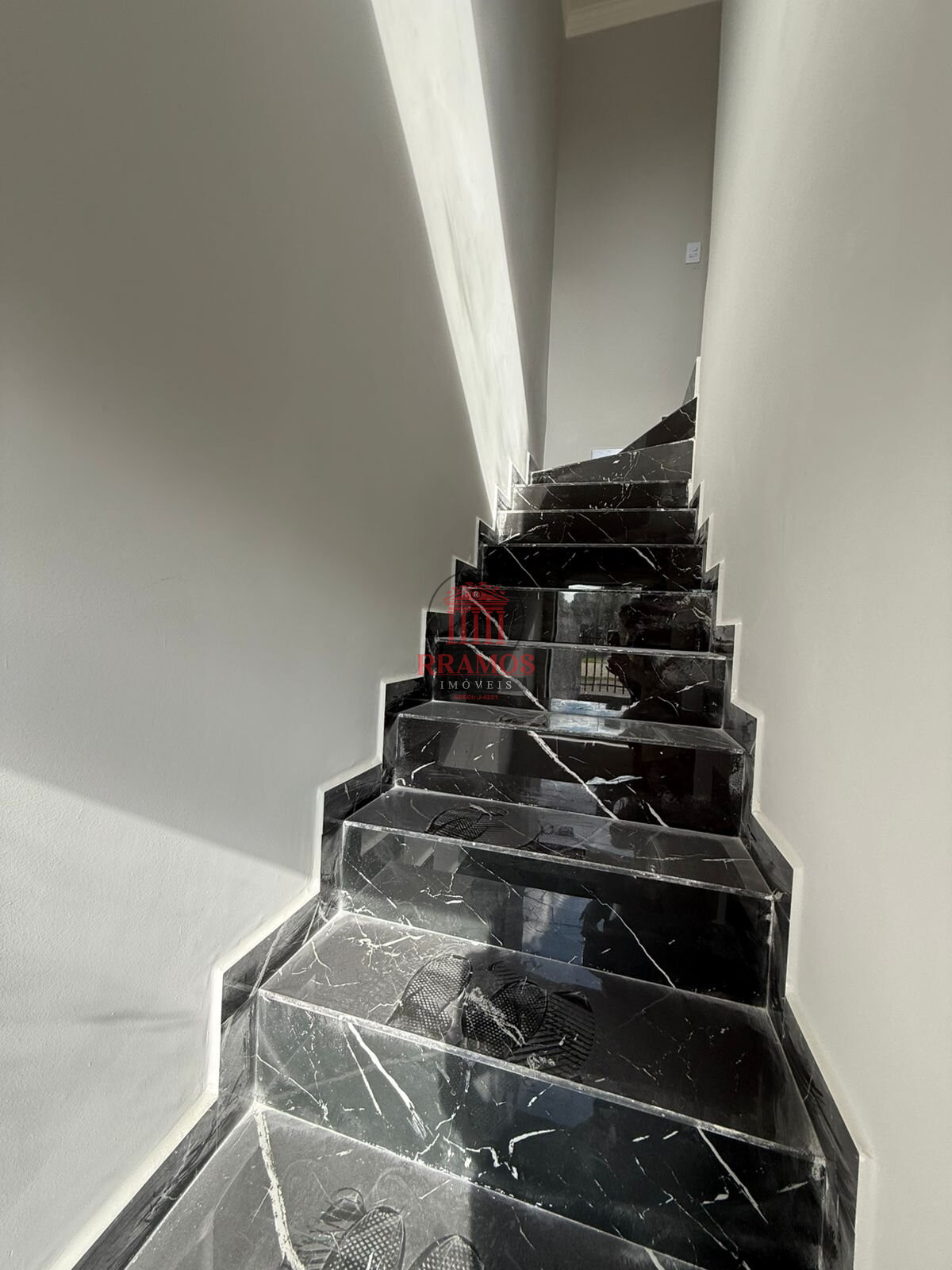 * Detalhes na escada e banheiro em Mármore